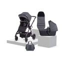Coast ensures a smooth and steady ride thanks to its puncture-proof multi-terrain wheels, robust chassis and 4-wheel suspension. The 6-piece Accessory Bundle includes everything you need to get started; an overnight sleeping approved carrycot, reversible pushchair seat, stylish changing bag, fleece-lined footmuff and rain cover.