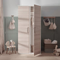 Create your perfect nursery with the warm and stylish Finchley Oak furniture collection. With its Nordic oak finish and sleek white details, complemented by polished chrome handles, it’s a neutral choice that fits seamlessly into any home. The full-size Finchley Oak wardrobe is the perfect place for keeping all of your little one’s essentials organised. With one hanging rail and a spacious overhead shelf, there’s plenty of room for baby’s clothing.