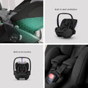 - First class lie-flat recline for optimum travel posture from car to stroller