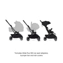 - Car seat compatible with Glide Plus 360 adaptors included. Additional universal adaptors sold separately to pair with a compatible car seat of your choice