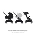 - Car seat compatible with Glide Plus 360 adaptors included. Additional universal adaptors sold separately to pair with a compatible car seat of your choice