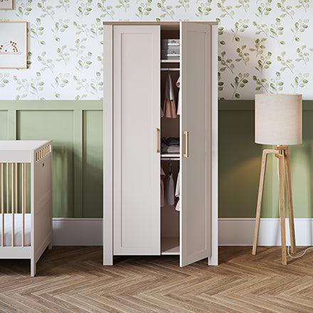 Nesting for your new arrival? Our Seville 3-piece nursery furniture set is complete with everything you need to create your baby’s first bedroom – a versatile cot bed, changer dresser and spacious wardrobe. With clean, elegant lines and gender-neutral tones of soft cashmere and natural oak, Seville invites a fresh and calming feeling into any nursery space. Designed to ensure timeless, long-lasting quality, our Seville nursery furniture set can be enjoyed for years to come as your family grows.